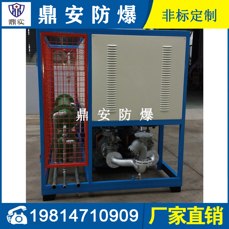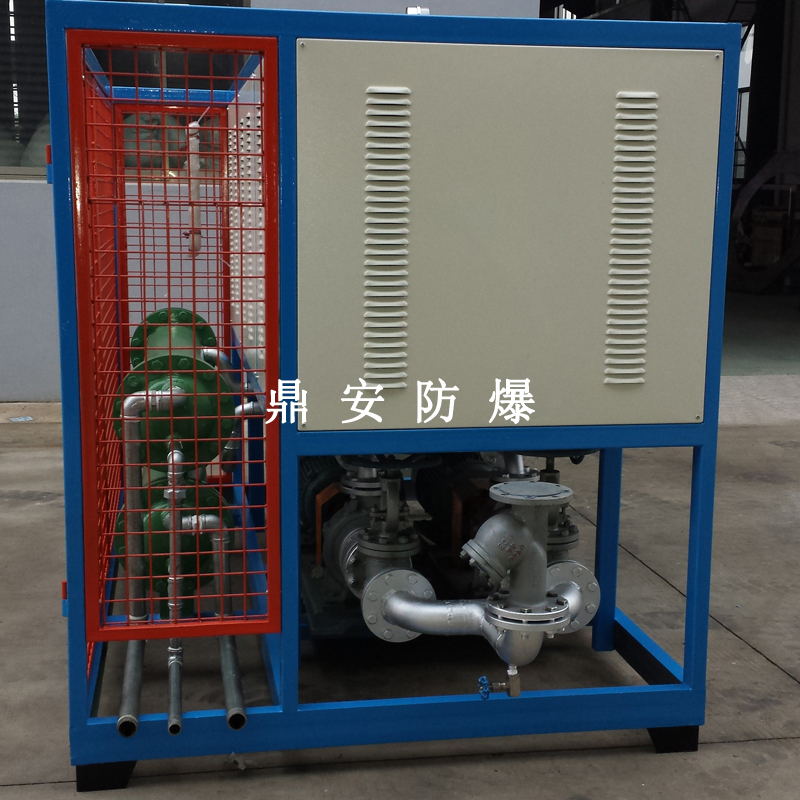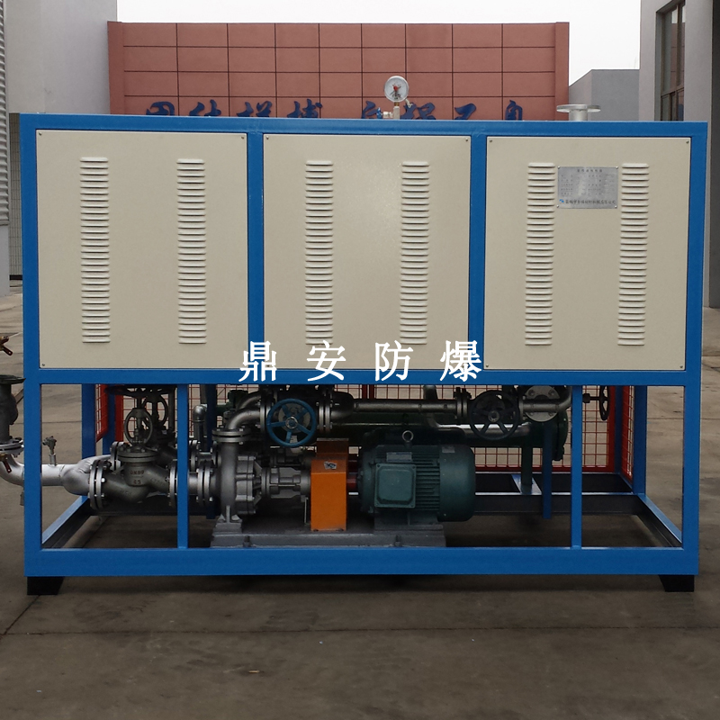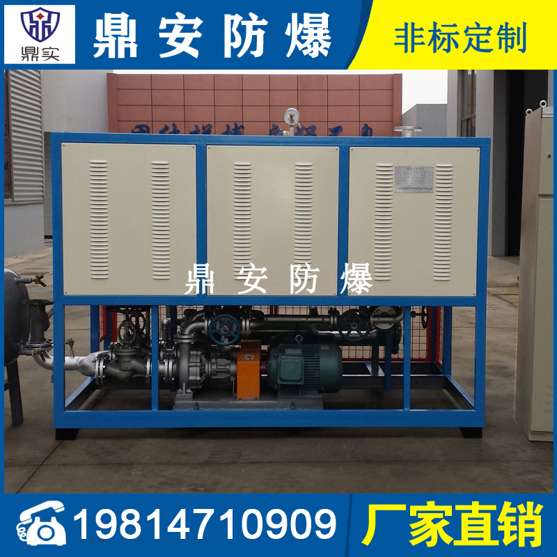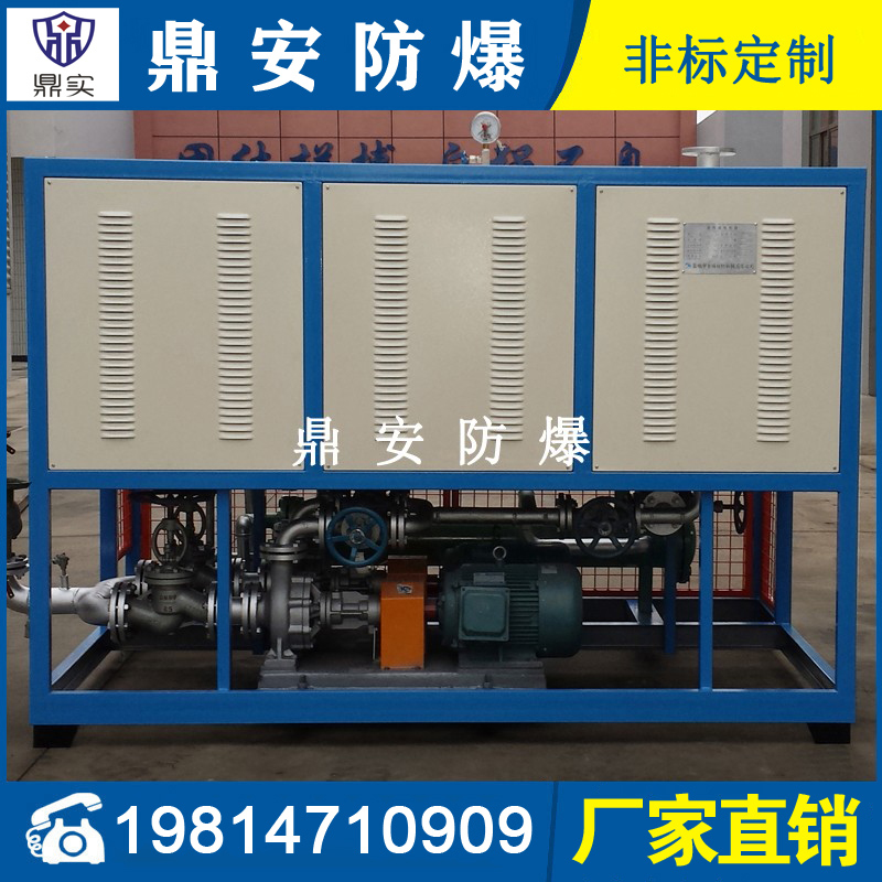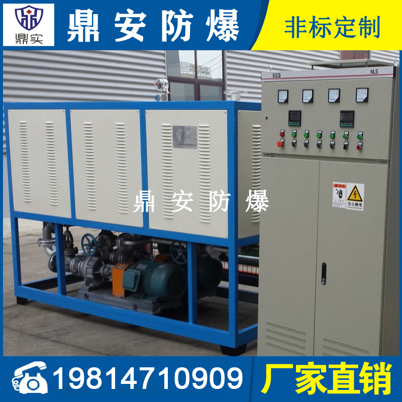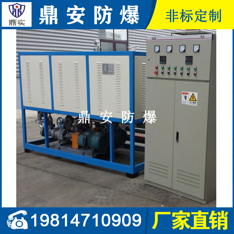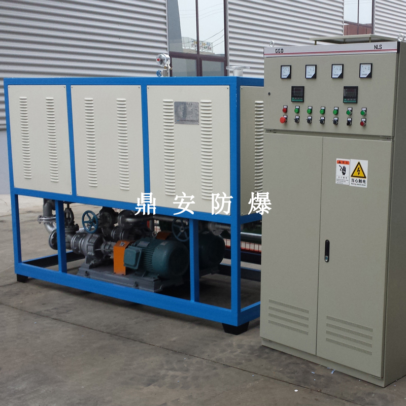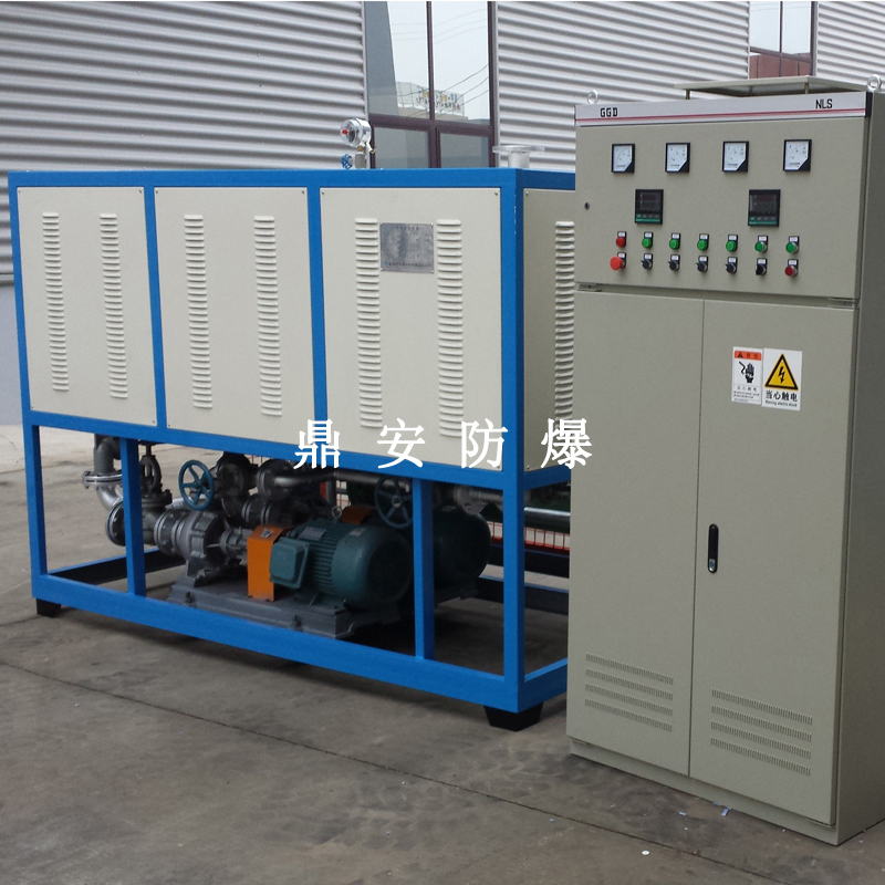 導熱油加熱機組(又稱電加熱導熱油爐)由防爆電加熱器、有機熱載體爐、換熱器(可配置)、控制柜,熱油泵、膨脹槽等組成一個整體的系統,用戶只需要接入電源、介質的進出口管道法蘭及一些電氣接口即可使用。具有完備的運行控制和安全監測裝置,能實行自動化控制。能在較低的運行壓力下獲得較高的工作溫度。