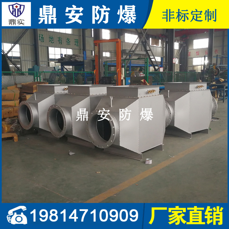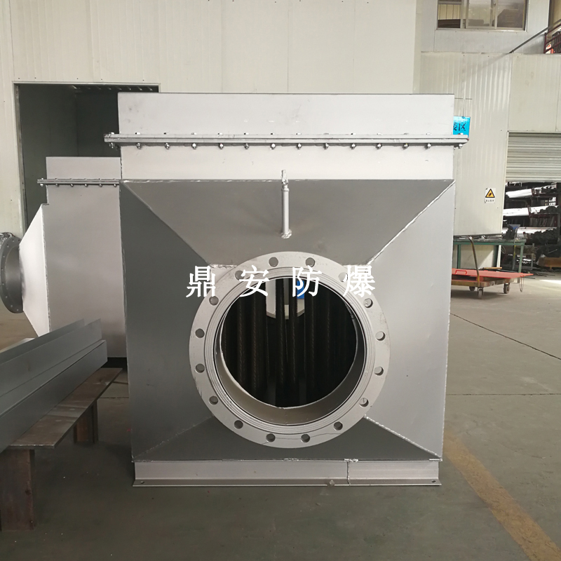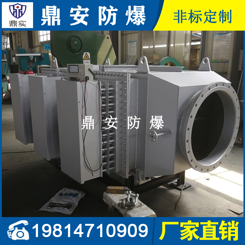 風道式加熱器主要用于風道中的空氣加熱,規格分為低溫、中溫、高溫三種形式,在結構上的共同之處是采用鋼板支撐電熱管以減少電熱管的振動,接線盒中都裝有超溫控制裝置。另在控制方面除裝有超溫保護外,還在風機與加熱器之間加裝聯運裝置,以確保電加熱器起動必須在風機起動之后,在加熱器前后加一差壓裝置,以防風機故障,通道加熱器加熱的氣體壓力一般不應超過0.3Kg/cm2,如需超過以上壓力,請選用循環式電加熱器;低溫型加熱器氣體加熱溫度不超過160℃;中溫型不超過260℃;高溫型不超過500℃。