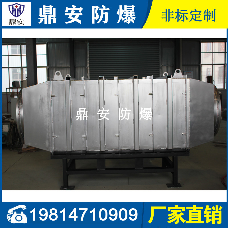 1、本體:該設備本體為方箱形。外殼及內膽為不銹鋼板材,保溫層采用硅酸纖維鋁作填充保溫,并配有型鋼支座,結構穩定、牢固。冷風進口及熱風出口為法蘭式結構。