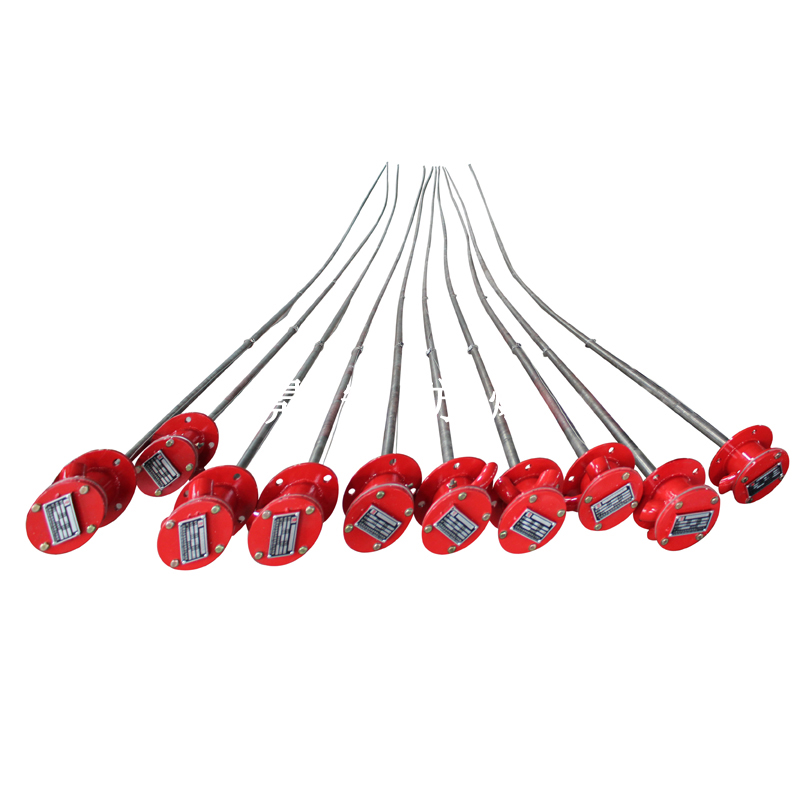 土壤修復電加熱管(也稱插入式電加熱器):是采用單端加熱管狀電熱元件,依據加熱不同介質設計規范,按照功率配置要求裝配在法蘭蓋上,插入需加熱套管中加熱空氣,發熱元件工作時所發出的大量熱量傳導給空氣,空氣溫度升高,加熱護套管,護套管達到所需的工藝要求來加熱土壤使土壤里面污染物達到相應的沸點氣化。當介質溫度達到工藝要求的設定值時,控制系統根據溫度傳感器信號,經PID 運算后調節電加熱器輸出功率,對發熱元件的電阻性負載實現溫度控制。使介質溫度均勻,達到所需要求;當發熱元件超溫時,發熱元件的聯鎖保護裝置立即切斷加熱電源避免發熱元件燒壞,延長使用壽命。