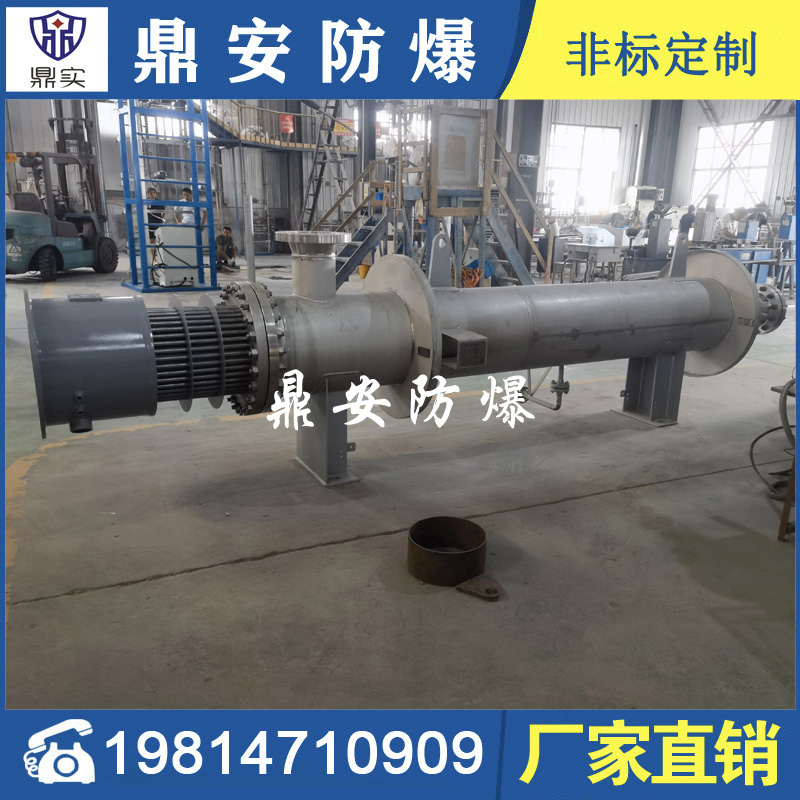 3、應用范圍廣,適應性強; 軸封電加熱器可適用于防爆或普通場合,它的防爆等級可達C級,它的耐壓可達25Mpa。并可根據用戶需要筒體采用立式或臥式不同的安裝方式。