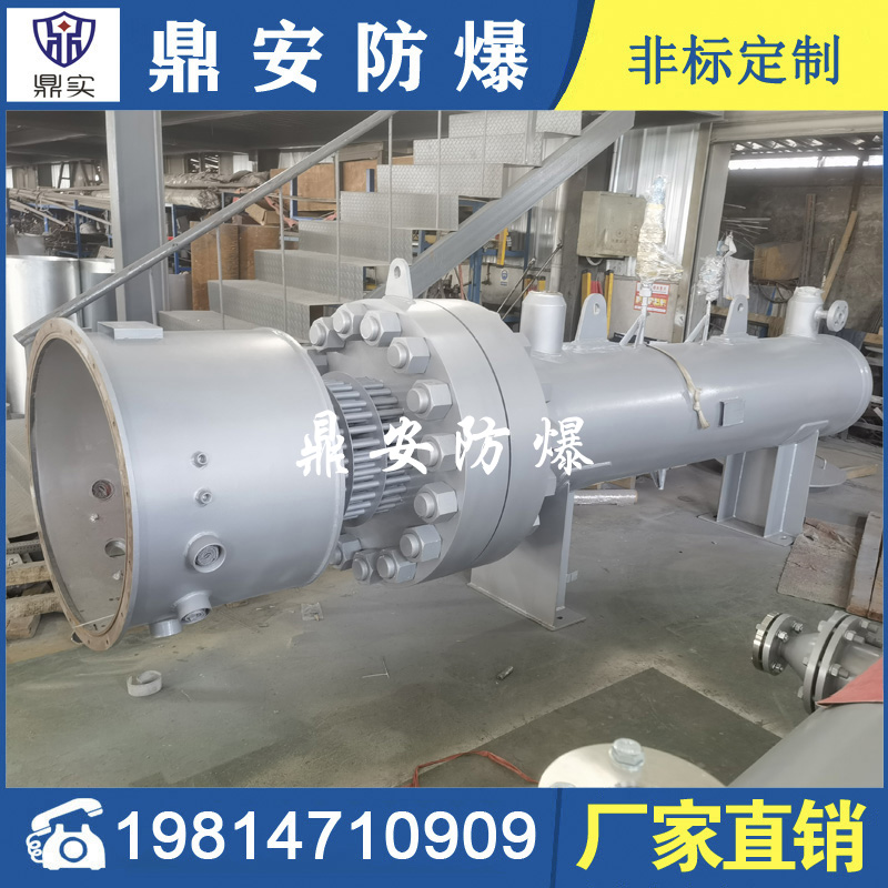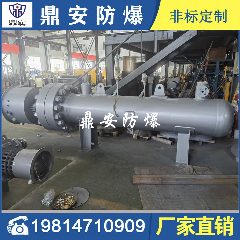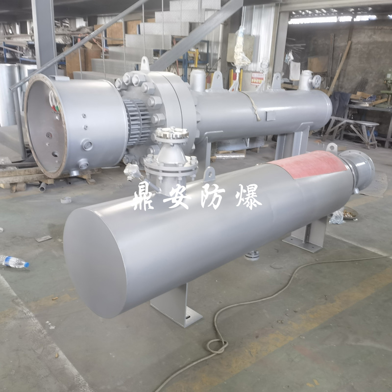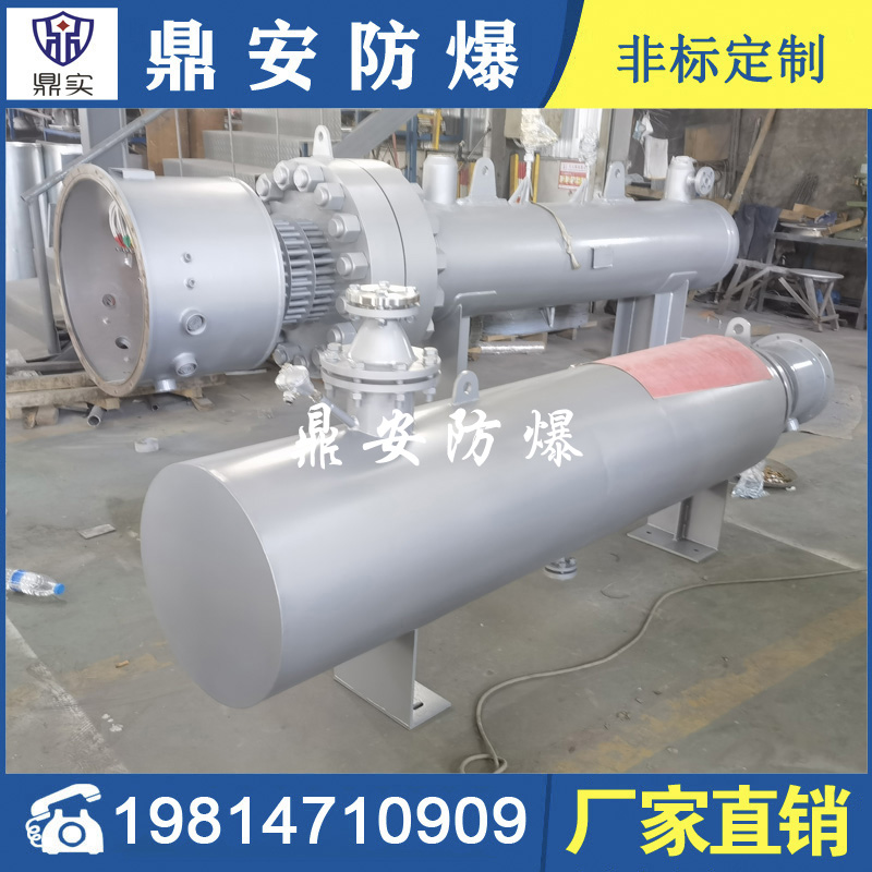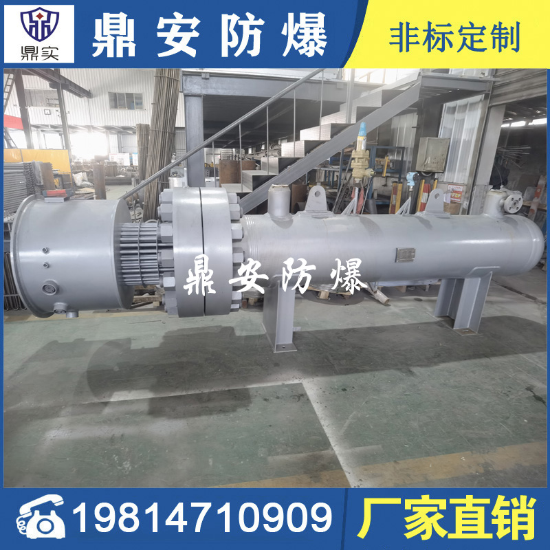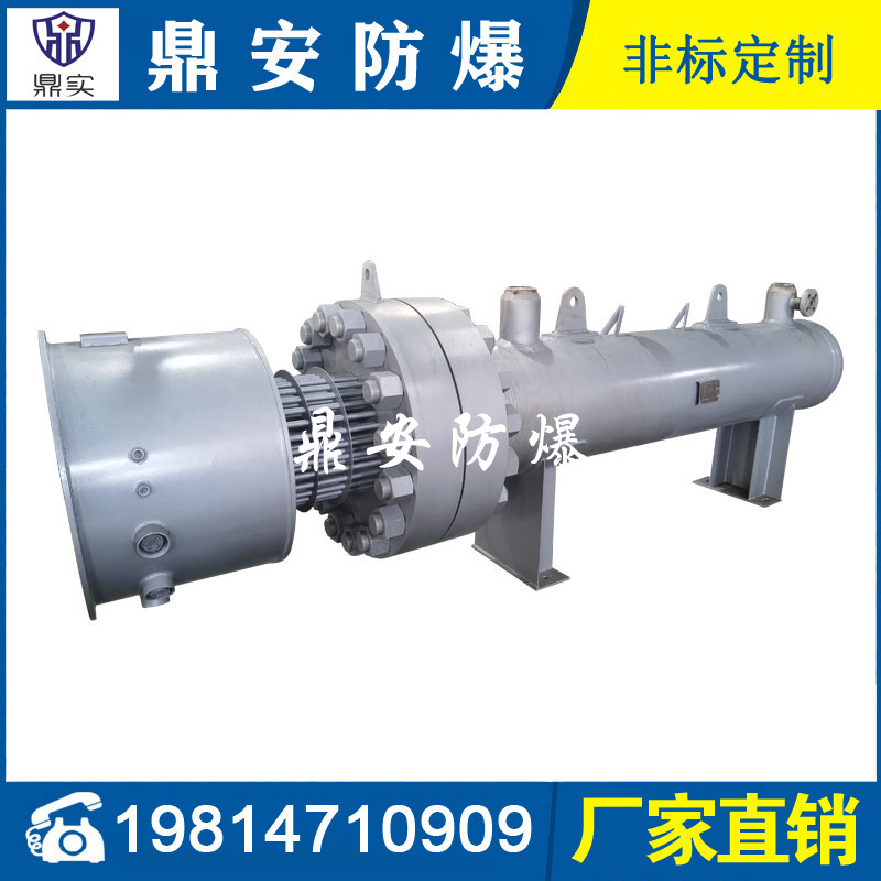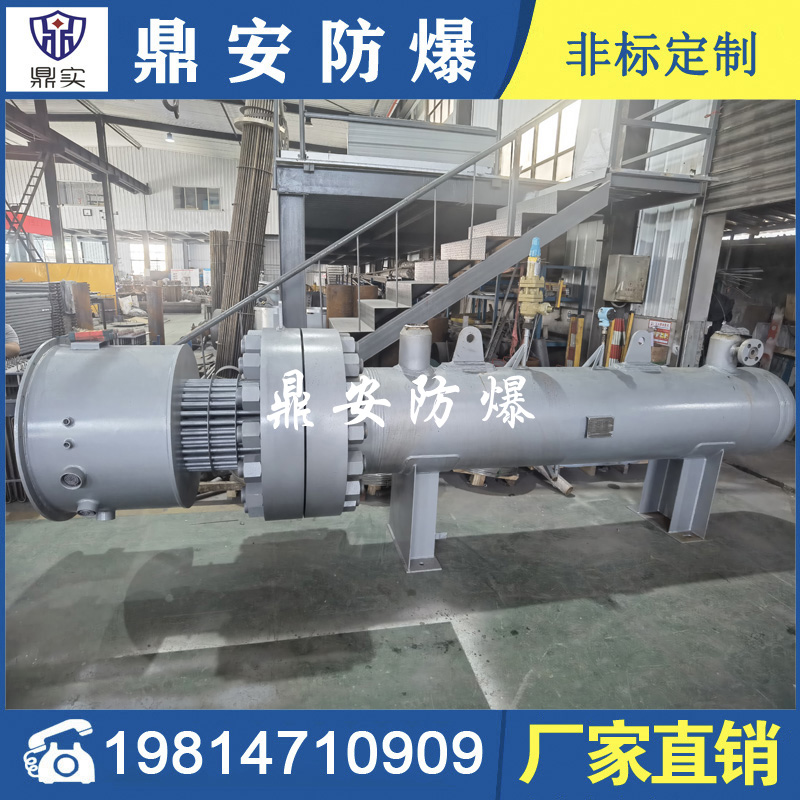 3、應用范圍廣,適應性強; 軸封電加熱器可適用于防爆或普通場合,它的防爆等級可達C級,它的耐壓可達25Mpa。并可根據用戶需要筒體采用立式或臥式不同的安裝方式。