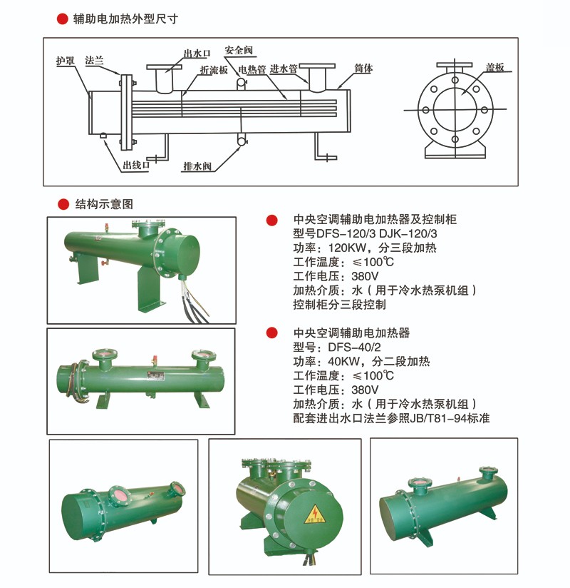 一、冷水熱泵機組輔助電加熱器產品系列 概述